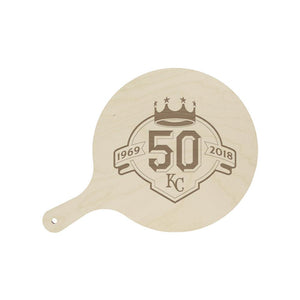 Natural wood pizza presentation and serving board - customize with your name and logo.