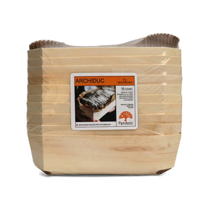 The largest baking mold in the Panibois family. Great for specialty breads and brioche. Made from 100% natural poplar wood. Each case includes lining paper. Fully biodegradable.